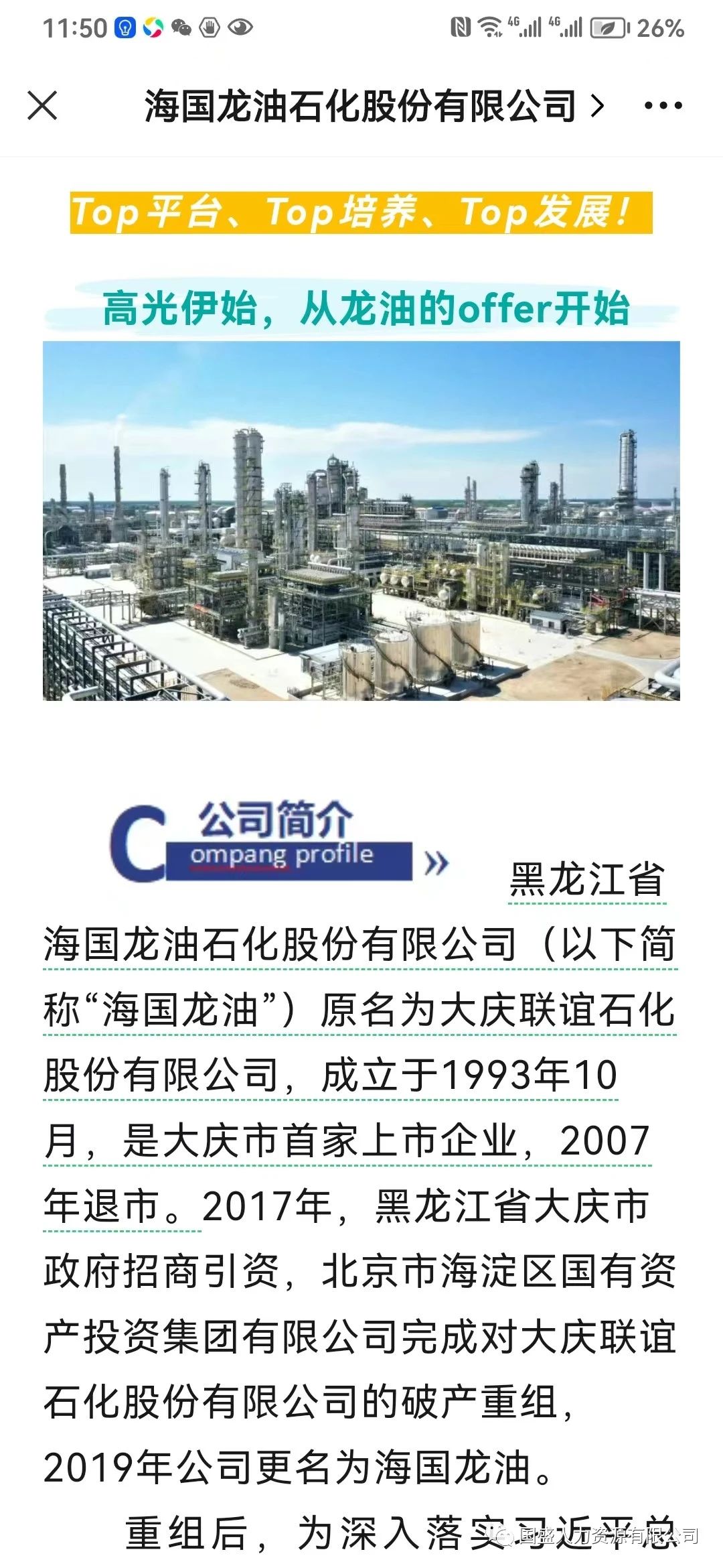 17、黑龍江海國(guó)龍油石化招聘:待遇優(yōu)厚,全市通勤車(chē),食堂宿舍。工作地點(diǎn):大慶林源化工園區(qū)!