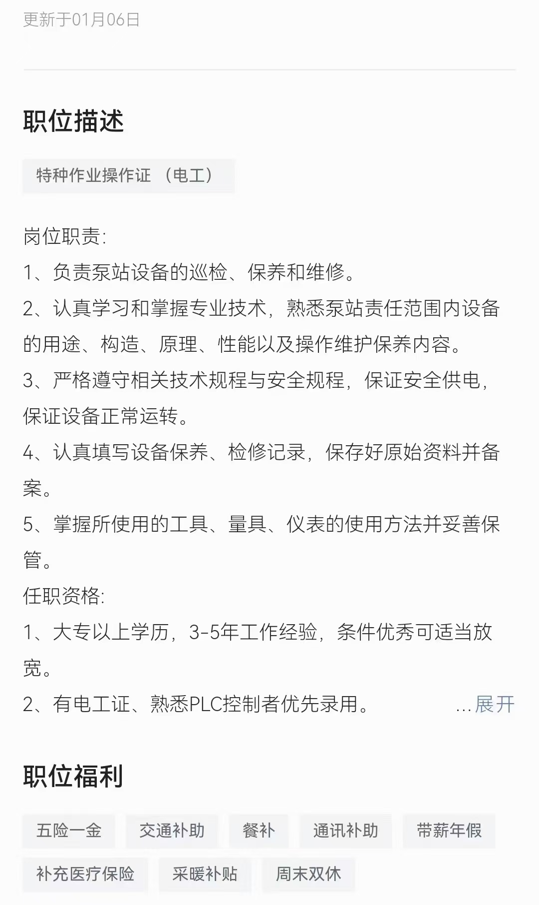 大慶國企直簽,大專以上學歷,有電工作業(yè)證者優(yōu)先,年后面試,五險一金,薪資3500+交補,餐補,年薪等福利,工作地點讓區(qū)。