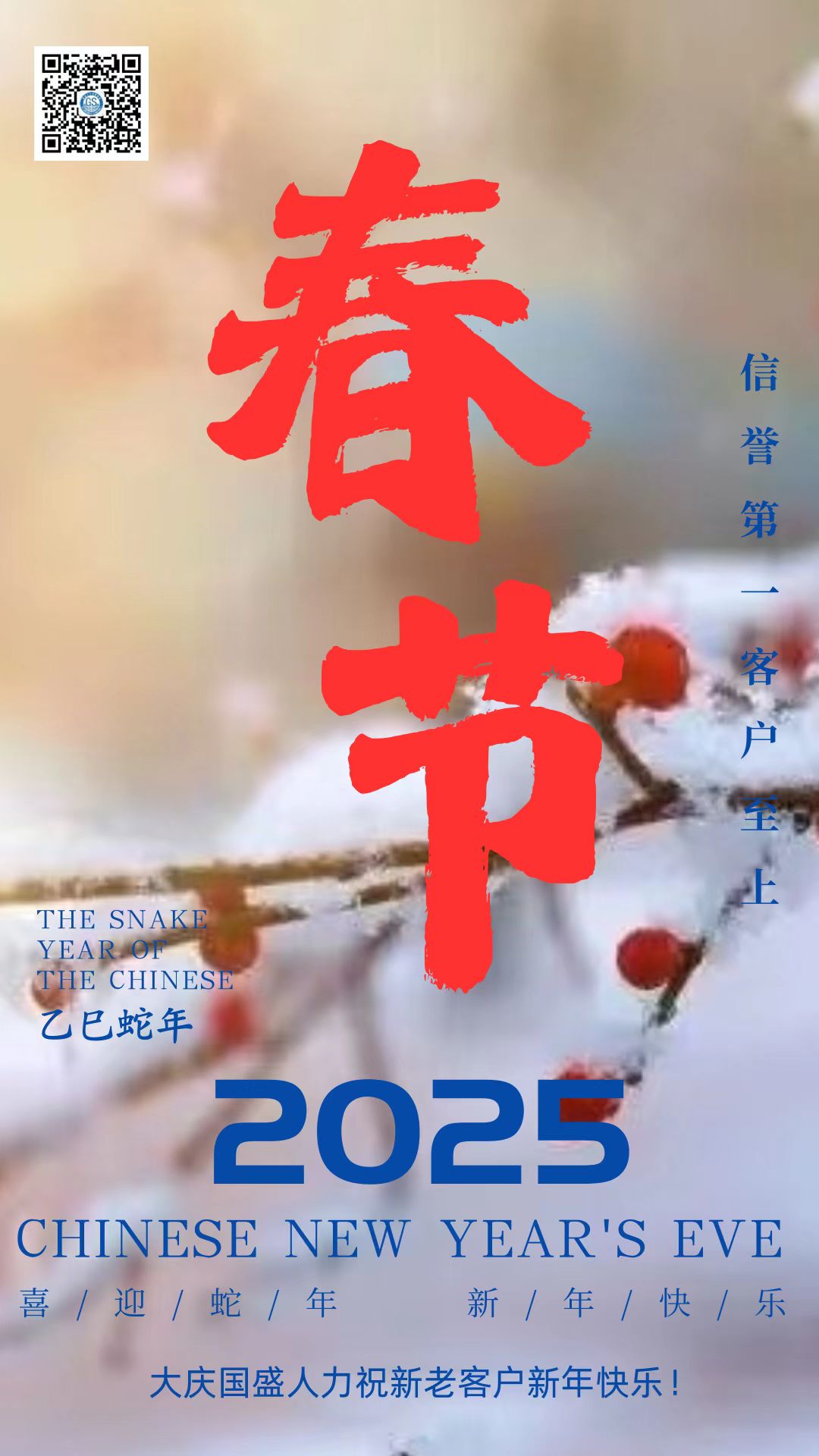 鞭炮聲聲,喚醒了沉睡的新年;瑞雪飄飄,帶來了新春的祝福。在這辭舊迎新的美好時(shí)刻,大慶市國(guó)盛人力資源管理有限公司向一直以來支持和信任我們的客戶、合作伙伴,以及每一位關(guān)注我們的朋友,致以最誠摯的新年祝福!