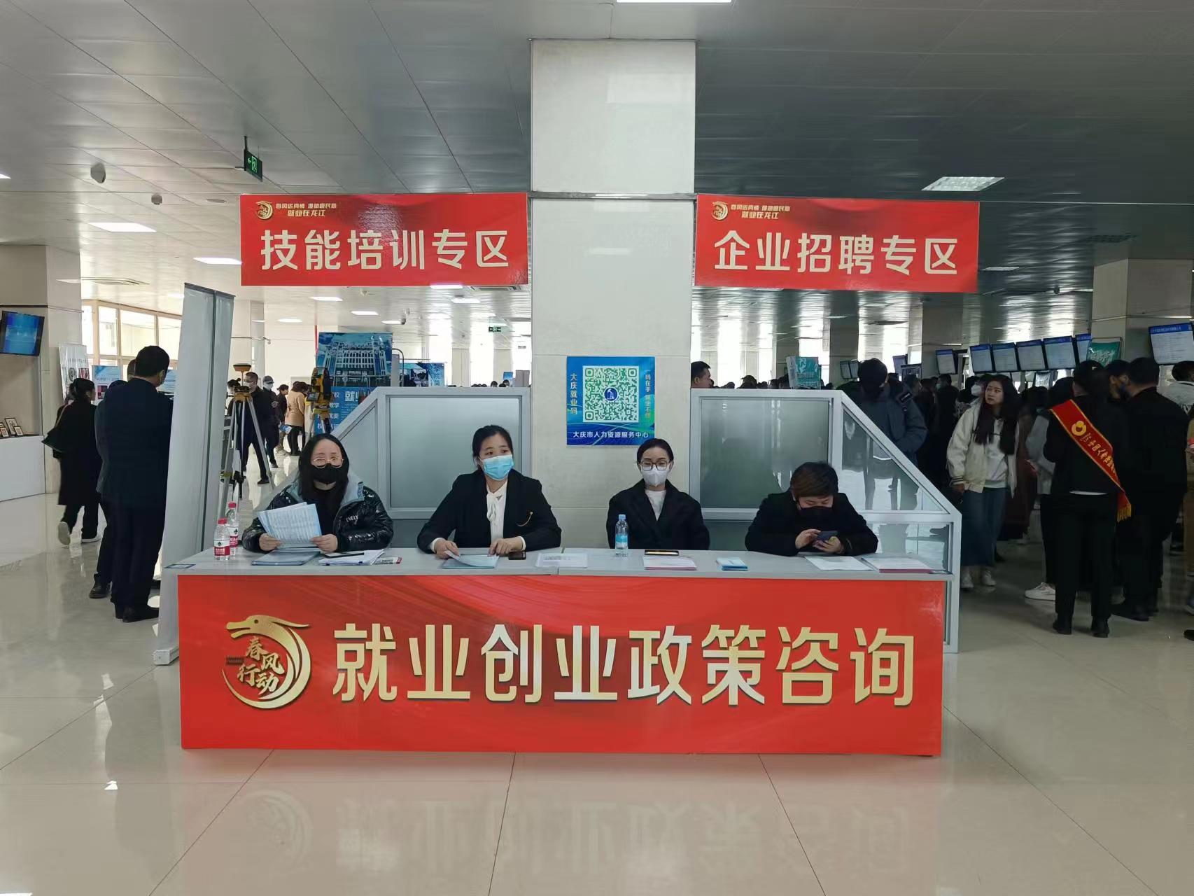 按照全省統(tǒng)一部署,第四屆春風云聘會于2023年3月18日舉辦,我市在大慶市人力資源服務中心暨哈大齊工業(yè)走廊人才服務中心招聘大廳同步舉辦了大型現(xiàn)場招聘會。本次招聘會設(shè)置了企業(yè)招聘專區(qū)、政策宣傳專區(qū)、技能培訓專區(qū)和職業(yè)指導窗口。企業(yè)招聘專區(qū)設(shè)展位140個,企業(yè)和求職者面對面進行了交流。國盛人力資源管理有限公司參加了本場招聘會,招聘會現(xiàn)場共有求職者60余人咨詢并投遞簡歷。共發(fā)放公司宣傳冊70余冊。