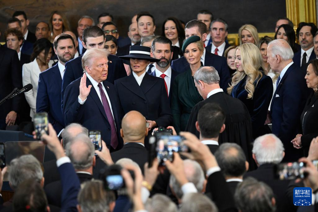 1月20日,在美國(guó)首都華盛頓國(guó)會(huì)大廈圓形大廳,特朗普在美國(guó)第47任總統(tǒng)就職典禮上宣誓。