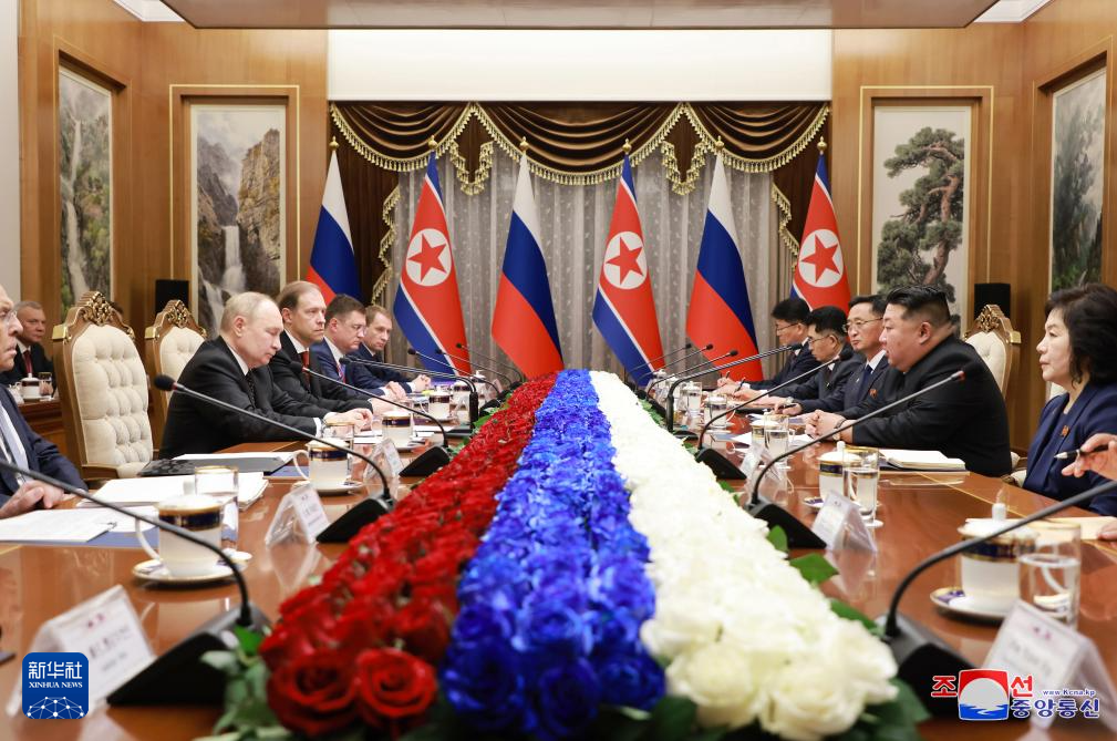 ??朝鮮勞動(dòng)黨總書記、國務(wù)委員長金正恩與俄羅斯總統(tǒng)普京19日在平壤簽署《全面戰(zhàn)略伙伴關(guān)系條約》。